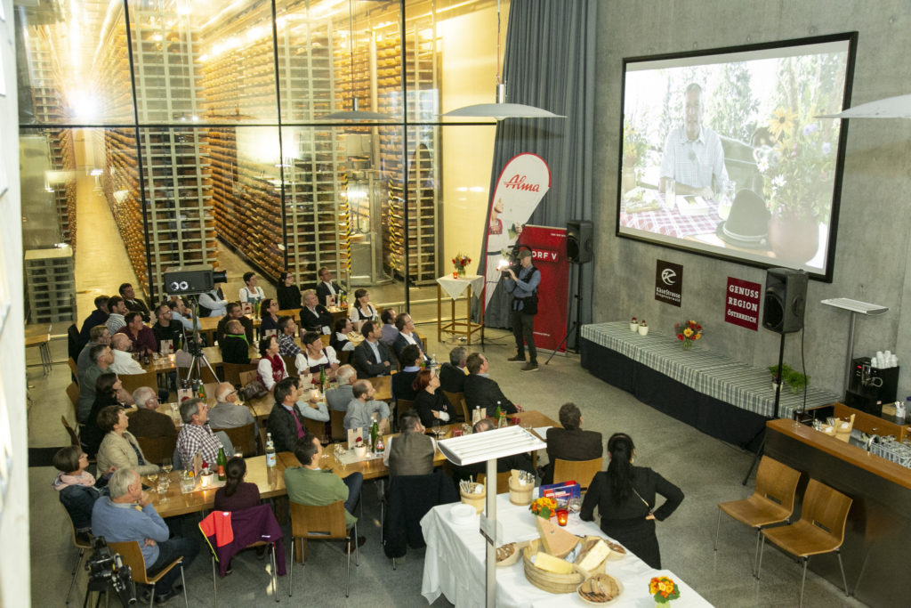 Bei Moderationen oder in einem Image-Film bekommen die Besucher/innen einen Überblick über die Käsetradition des Bregenzerwaldes.